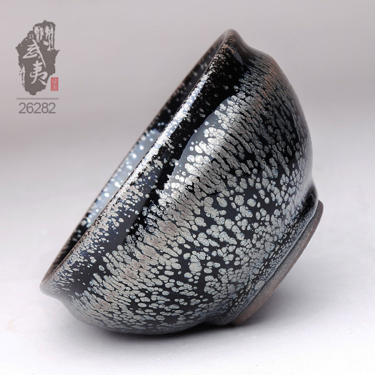 秉承古法,手工创作,专心致志研究黑釉油滴建盏。作品釉色浓黑,油滴斑纹圆润、立体,边界清晰,银光纯净,玻化完整,口沿可见星点小斑。亲自调配釉料,保证绿色环保,健康无害。其作品曾在“《厦航杂志》头等舱专用版”刊登过,参加过“上海泛华2016春季艺术品拍卖会”,先后被陕西省西安博物院、西安法门寺、中国茶叶博物馆等机构收藏。