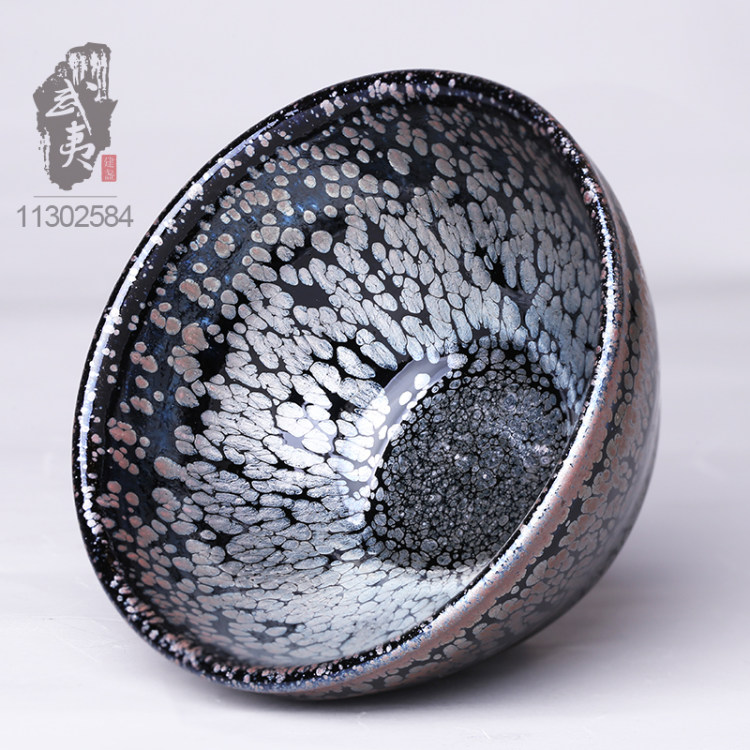 秉承古法,手工创作,专心致志研究黑釉油滴建盏。作品釉色浓黑,油滴斑纹圆润、立体,边界清晰,银光纯净,玻化完整,口沿可见星点小斑。亲自调配釉料,保证绿色环保,健康无害。其作品曾在“《厦航杂志》头等舱专用版”刊登过,参加过“上海泛华2016春季艺术品拍卖会”,先后被陕西省西安博物院、西安法门寺、中国茶叶博物馆等机构收藏。