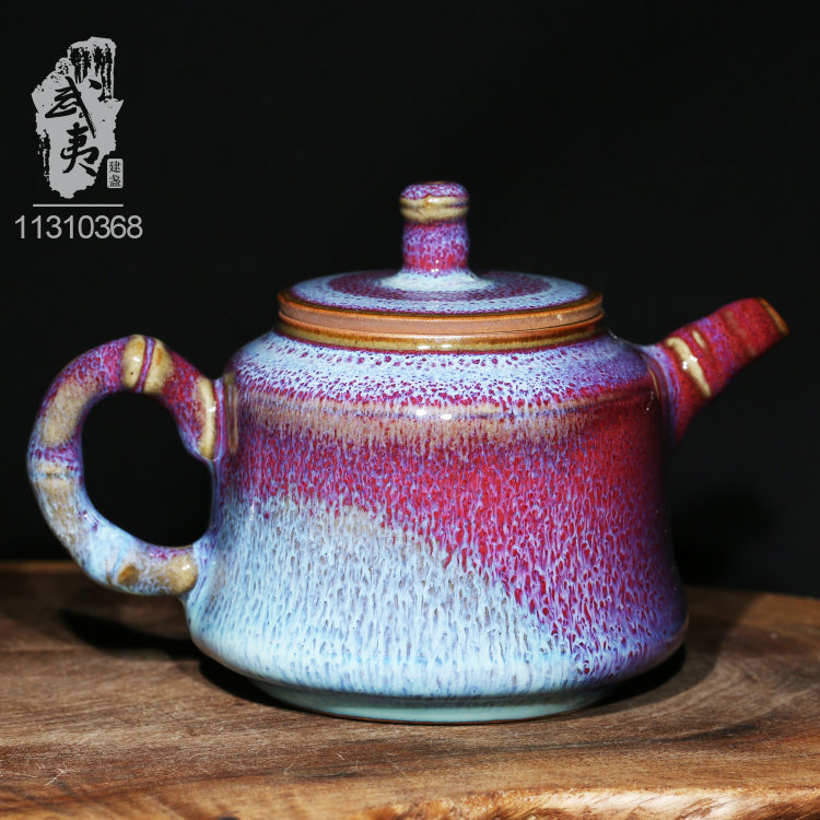 星航钧窑,玫瑰紫竹节壶