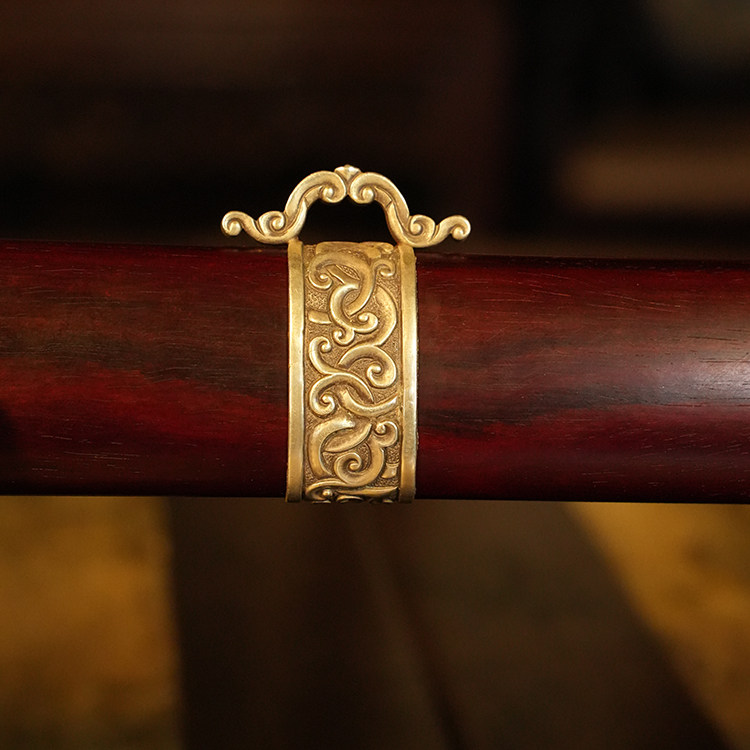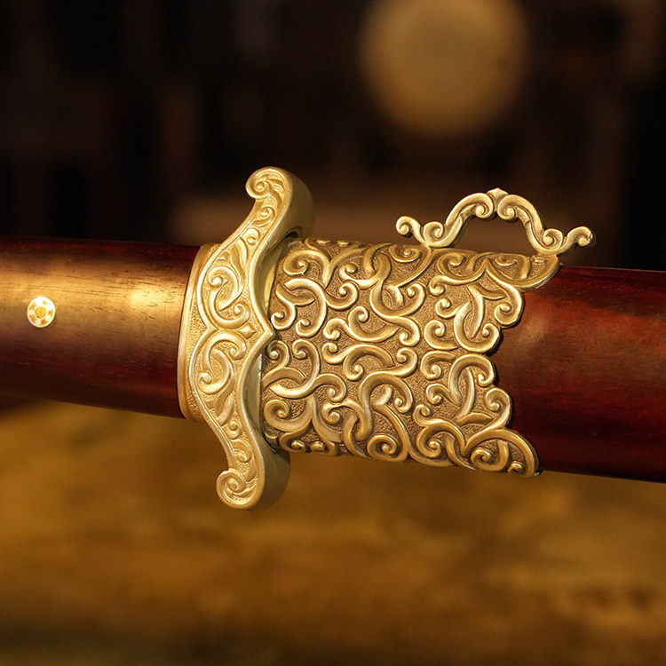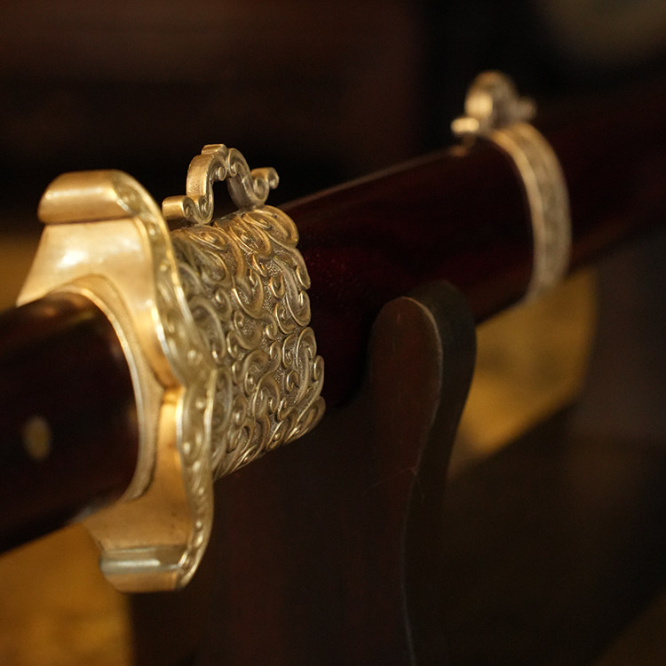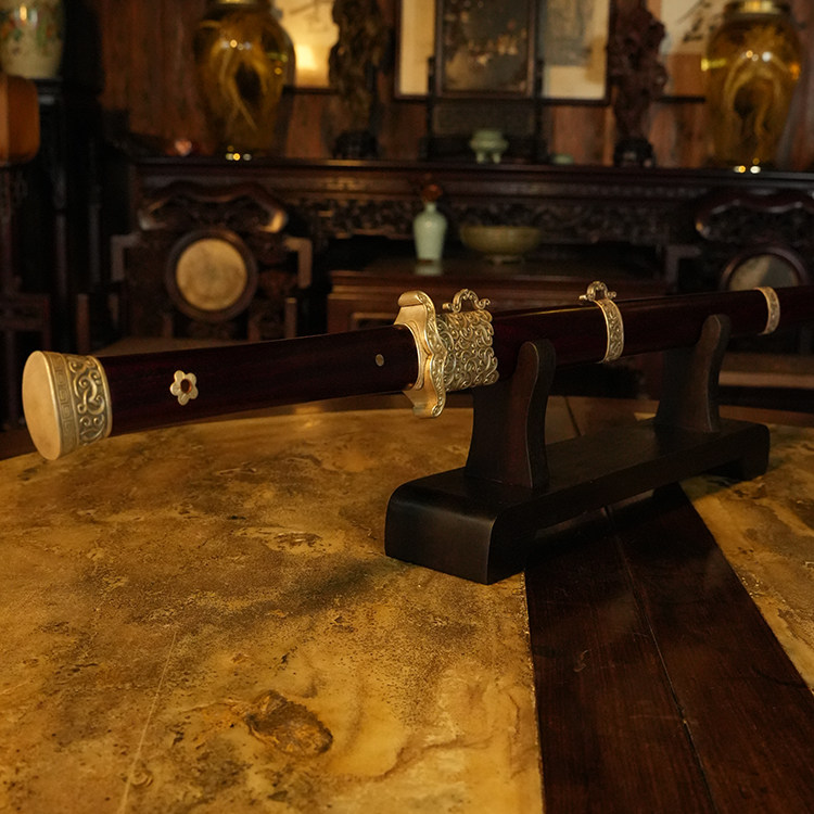 材质:古法锻制陨铁剑身,纯银手工精雕外装,小叶紫檀剑鞘